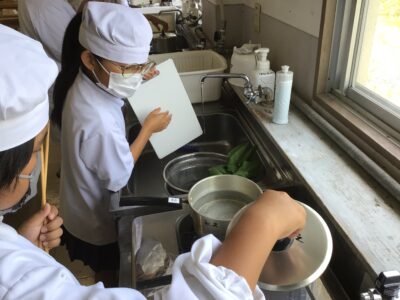 家族にもごちそうして欲しいな。 学校生活 2025.07.02 今日は5年生が、家庭科の調理実習でホウレン草のおひたしを作りました。野菜が苦手な人もいましたが、自分たちで作ったおひたしは格別だったようで、「ホウレン草が好きになった。」という声も聞かれました。ぜひ家族にもごちそうしてほしいです。