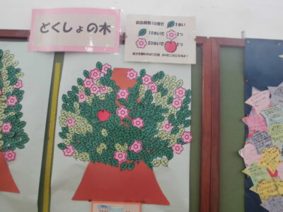 読書の木に実がなりました。 学校生活 2025.09.11 3,4年生の読書の木に実がなりました。夏休み中もたくさんの人が図書室に本を借りに来てくれました。3、4年生は9月5日までに、2,181冊の本を読んでいます。2,5年生は、1,410冊、1.6年生は1,511冊の本を読んでいます。冊数だけにこだわらず、これから迎える読書の秋に向けて、すてきな本にたくさん出会って欲しいと思います。