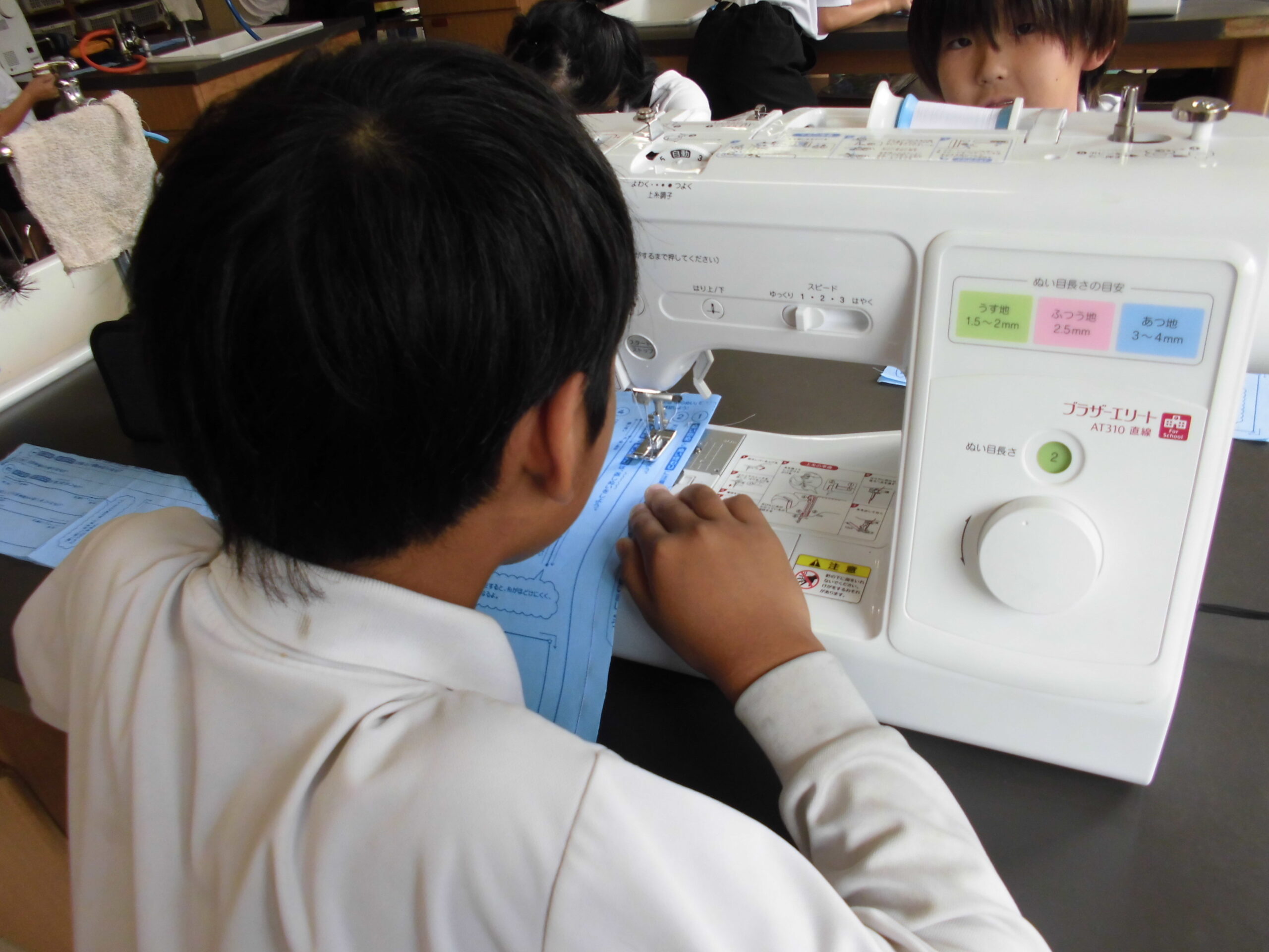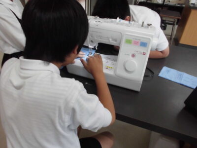 ミシンにチャレンジ 学校生活 2025.09.29 5年生が初めてのミシンに挑戦しました。まだまだ慣れない手つきでしたが、直線縫いが上手にできていました。ミシンの便利さにも気づき始めていました。5年生の時の学習を生かし、6年生は修学旅行に向けてミシンを使ってナップザックを制作中です。
