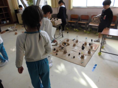 「いらっしゃい!いらっしゃい!」元気な声が響いていました。今日は、1年生の「あきのおみせやさん」に松原保育園のみなさんが来てくださいました。かわいいたくさんのお客さんに1年生は大喜びでした。みんなで楽しい時間を過ごしました。