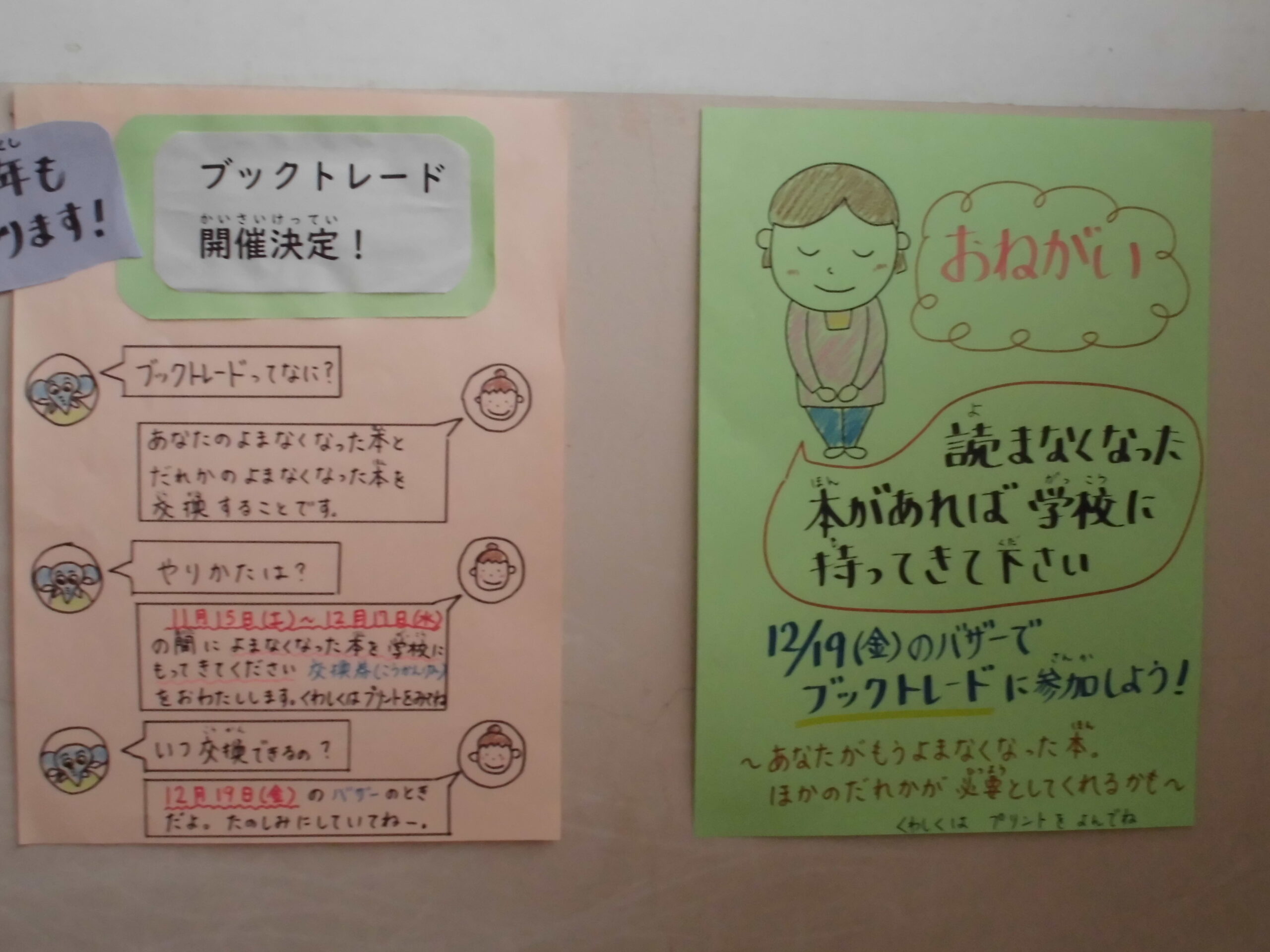 ブックトレードってなに? 学校生活 2025.12.04 今年もブックトレードが開催されます。ブックトレードって何か知っていますか。ブックトレードとは、読まなくなった本を誰かの読まなくなった本と交換することです。室積小学校では、12月19日のバザーの際に行います。楽しみです。