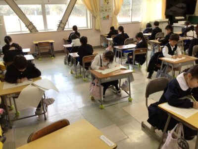 今日は、全校で漢字大会を行いました。各学年で習う漢字を中心に、読み書き、文章内での漢字の活用などを取り入れた問題に挑戦しました。今日の漢字大会に向けて一人一人が復習や練習に取り組んできました。漢字大会への取組を今後の自信にしてほしいと思います。