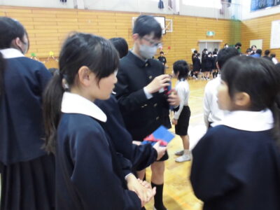ありがとう 6年生 学校生活 2026.03.06 6年生の卒業を前に、6年生に感謝の気持ちを伝えようと、1~5年生が「6年生へ 感謝の会 ~ エールをこめて ~」を開きました。各学年、歌や感謝の言葉、リコーダーの演奏などいろいろと工夫を凝らして、6年生に感謝の気持ちを伝えました。6年生と一緒にリクリエーションを楽しんだりもしました。縦割り班で力を合わせてつくったプレゼントも渡しました。6年生にしっかりと感謝の気持ちが伝わったと思います。